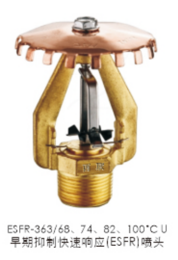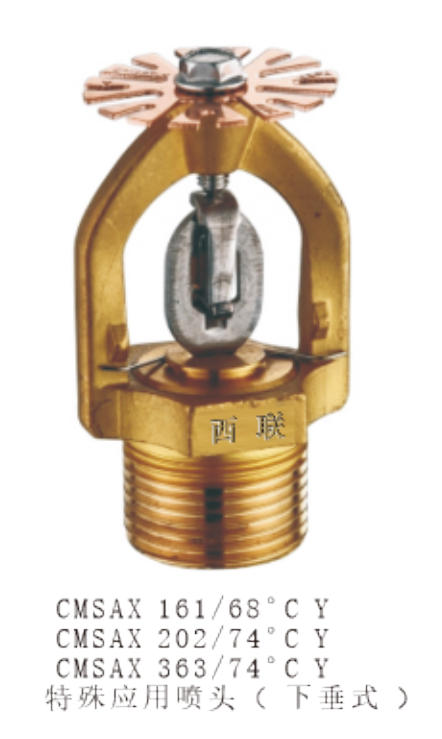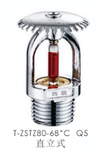 洒水喷头(K=80,115),是特殊响应-标准覆盖喷头,玻璃球直径5mm,用于轻、中、严重危险级场所、商用场所。 (如银行、旅馆、购物中心)。精炼厂、化工厂和其它各类工厂。