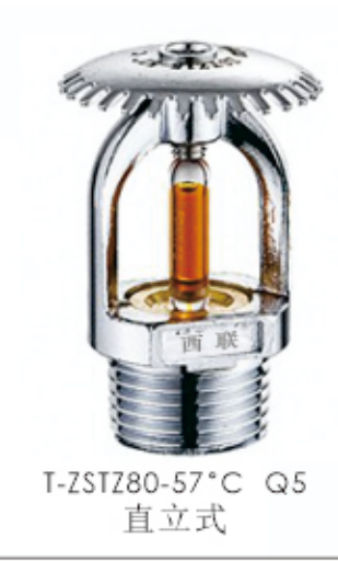 动作:玻璃泡内液体受热膨胀。当到达公称动作温度时,膨胀的液体使玻璃泡爆裂,喷头动作洒水。
