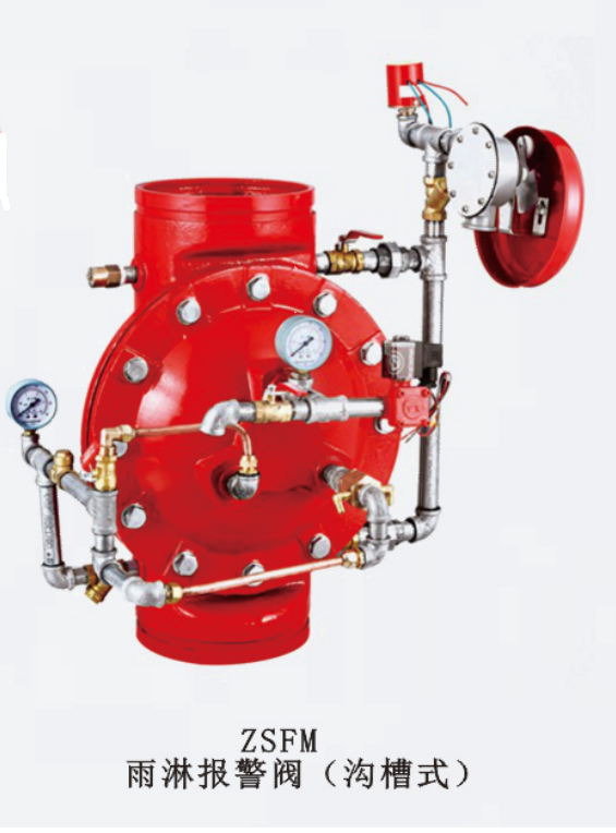 ZSFM隔膜式雨淋报警阀由主阀、水力警铃、压力开关、手动开启阀、电磁阀、手动复位阀、复位器及控制管路等组成。配以开式喷头、水幕喷头、水雾喷头及火灾报警控制系统即可组成相应的水喷灭火系统。具有结构简单、操作容易、安全可靠、安装维护方便等特点。失火时,雨淋阀开启,系统开式喷头向火源处喷水,而且可以同时自动向整个被保护的面积上喷水,从而防止火灾的蔓延和扩大。适用于易结冰或需重点保护的火灾危险性大的建筑物和场地。